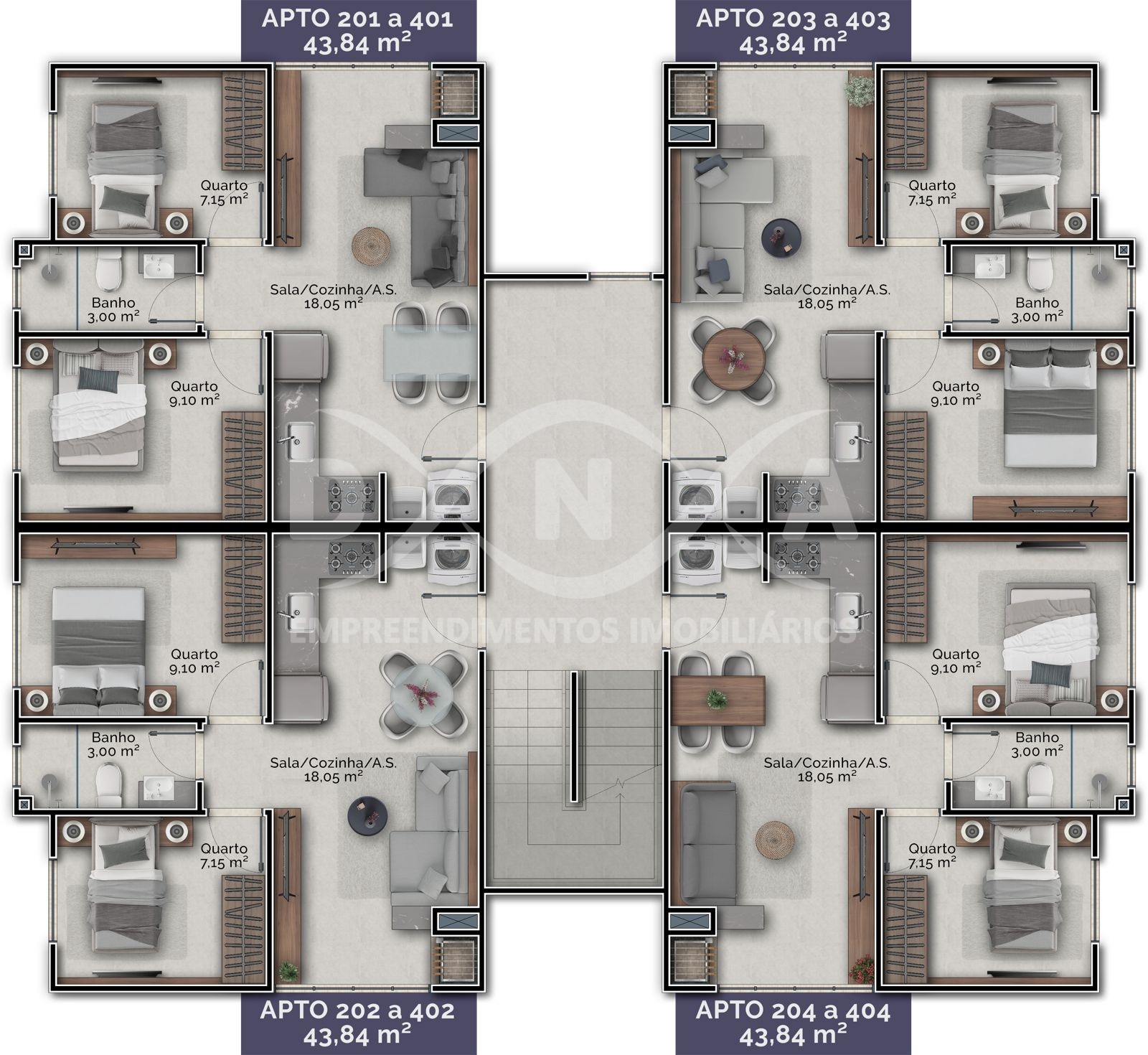 4 apartamentos por andar